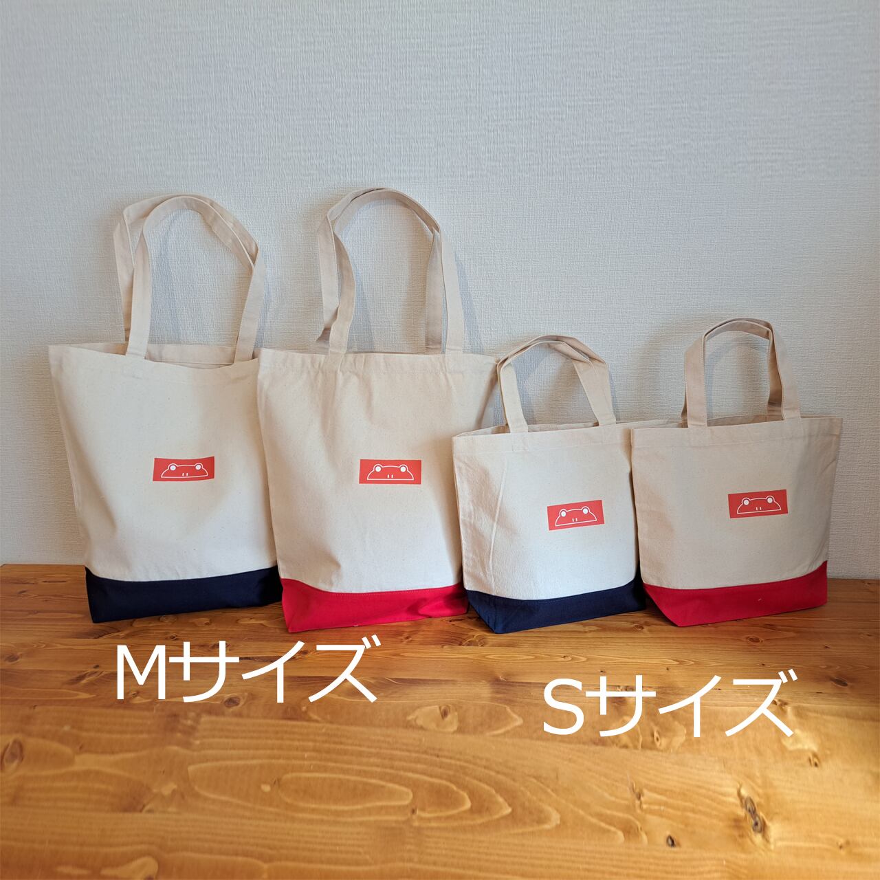 カエル技研 トートバッグ Sサイズ(5L) ナチュラル × ネイビーブルー (United Athle)